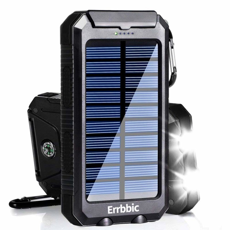 Pengisi Daya Tenaga Surya 20000mAh Bank Tenaga Surya Tahan Air Portabel Pengisi Daya Baterai Cadangan Eksternal Built-in Dual USB/Senter untuk Semua Ponsel, Tablet, dan Perangkat Elektronik (Hitam)